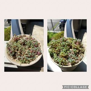 実家より帰って来ました🚙 暗くなる前に帰りたかったけど せっかくだからご飯を食べてから 帰りなさいという事で 有り難く頂いてから帰って来ました🚙 写真は母の日にプレゼントとした寄植え🪴 ⬅️2021.5.3 真ん中:2021.6.20 伸びたセダムをカット✂️した後 ➡️今日 多少伸びてる子がいたけど そのままにしました うちの伸び伸び暴れた寄植えより 綺麗に育っている💧 父の方が育てるの上手いかも🤣
