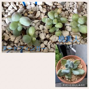 もうひとつ葉挿しっ子さん達で 🏷つぶつぶの日に参加します🌱 左右2つずつです🌱 ⬅️ヌードフィンガー ➡️桃美人 ⬇️桃美人のお母さん🪴 ヌードフィンガーさんも桃美人さんも 丸っこくてぷくぷくで可愛い🥰 大きくなってもこのままの姿でいて欲しいけど 桃美人お母さんが薄くて細長いんですよね💧 どうか細長くならずに このままぷくぷくのままでお願いします🙏🤣