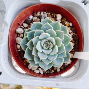 昨年夏に知り合いがくれた 葉挿しっ子💞 だいぶ色形がノバヒネリアナっぽく なったのでリメ鉢に植え替えです🫧