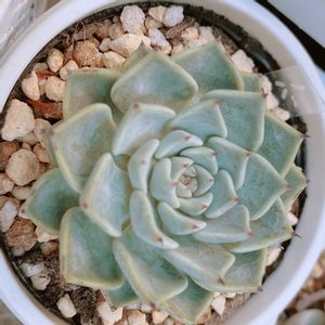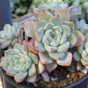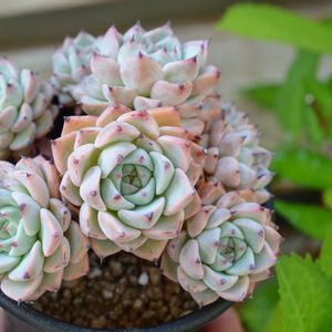 葉数が多くてエッジがポツンとピンクになるコロンとした子がタイプ。 まんまるに育ちますように。
