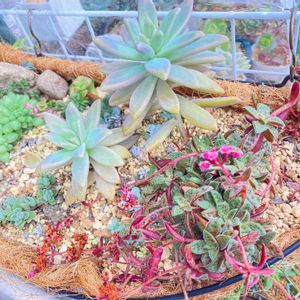 2枚目✌︎('🍊'✌︎ ) 寄せ植えセンスなしなのに GSのお友達のバンキングを見て 秋にポイポイ( ˘ ³˘)۶⌒♡ カット✂️ブスブス 葉っぱパラパラ 🪨ドンっ 軒下カバーなしでも元気(ᵒ̤̑ ◁ ᵒ̤̑) しかも大きくなってる! 増えてる! 強い子はいいね〜デレデレ⸌̷̻( ᷇〰 ᷆◍)⸌̷̻♡⃛フニャフニャ クーペリーも可愛いお花を咲かせてるし♪ 嬉しくなっちゃう💓