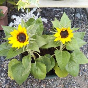 ミニひまわり完全に開きましたヽ(゚∀゚)ノ パッ☆ 葉っぱも花びらも誰かに食べられています(;´∀`)