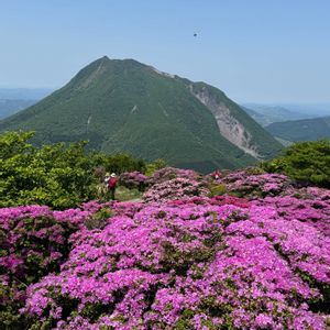 別府市鶴見岳のミヤマキリシマ❗ 背景は、由布岳です❗