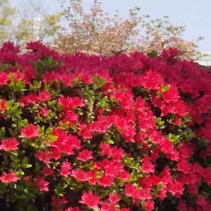 今日は良いお天気です。☀️💦 お昼休みに真っ赤な「ミヤマキリシマ」のお花をパチリ!📸♥️🌿🤗 遠くに桜のような「ハナミズキ」のお花も見えます。🌸🌸😊😄🌞✌️