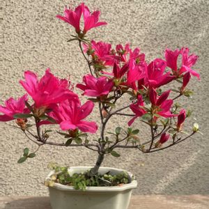 今日のお花 ツツジ🌺 義母さんの盆栽、ミヤマキリシマツツジの花が咲いてきました 昨年に続いて花数が少ないです 以前のように樹形が爆発ということにはならなくなりましたが、全部ピンク🩷に染まって居たのに残念です ドウダンツツジを一杯に咲かせているフォロワーさんに聞きましたら、日当たりと水だと言われました 同じ場所で花を一杯に咲かせてくれたこともあったので、多分に水遣りが原因だと思います 庭植えの多分平戸ツツジの方は白、紅ともに剪定の時期を間違えたらしく花芽がありません カロライナジャスミンの花が開きかかっています あっという間に黄色の塊になってきました 一昨日、ヤマアジサイ紅の3株のすべてに花芽がありました ヤマアジサイも水遣りが決めてになるので、庭植えの株も気をつけて水やりしていたようです オトメツバキを活けようとしましたら花が落ちてしまいました 今はゴシキツバキが咲いているだけになりました 今シーズンは花を喜ぶ人がいなくなりましたので椿を飾るのも最初で最後です ①② ミヤマキリシマ、牧野冨太郎さんの命名です 別名はコメツツジ、ウンゼンツツジとも呼ばれているようです 後の二つの呼び名はそれぞれに注意点があるようです Wikipedia、ミヤマキリシマ、ウンゼンツツジを参照しました 九州の高山に生育するツツジで、先日投稿したコバノミツバツツジの花よりもさらに小さく1cmぐらいのかわいいピンクのツツジです 雨の中で咲いていました 蕾も小さくて、濃い色です 下草に小さなスミレが付いているのですが、居なくなったヒメスミレの大きさだと喜んでいたらアリアケスミレのようです 😟 ③④ カロライナジャスミンの花が咲き始めました 剪定は、花が終わった直後にするのですがフェンスの下の方に花がつかないのが悩みです このフェンスを見て、三月ごろに下の方へ誘引すればどうだろうかとおもいました 来春、まで覚えていられるかな ⑤ ヤマアジサイ全てに花芽が付いて嬉しいです ヤマアジサイのみ4月11日撮影 椿は一つの枝に花が二つと蕾が付いています 2025年4月13日撮影 4月2日、香嵐渓にカタクリを見に行って来ました やっとみどりのまとめを書くことができましたので、よかったら見てください