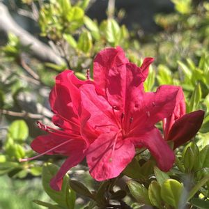 こんにちは 🏷️真っ赤な火曜日 ご近所さんのツツジ 一輪だけ咲いていました 小さな葉っぱに鮮やかな花 ミヤマキリシマかなぁ?