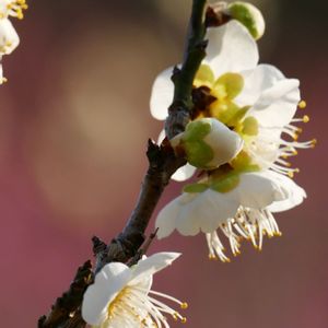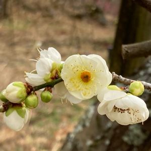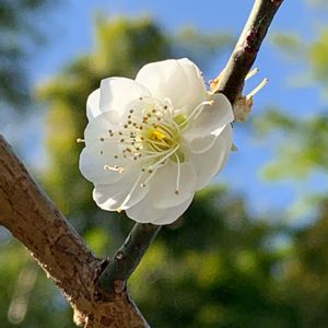 梅(緑萼梅 りょくがくばい) 普通の梅は萼のところが赤いのですが、これは緑色。中国原産のものらしいです。 特に蕾は、緑色が強く感じられます。普通の白梅より爽やかな色合いでした😃 久々に長距離ウォーキング(といっても10km)、楽しむことができました😄🎶