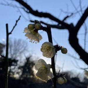 ウメ/白梅/緑萼梅 そろそろ陽も落ちて 緑萼梅の透明感が綺麗です✨ 公園の梅林は日当たりが悪いのか、開花が遅く…ようやく少しずつほころんできました♪ でもちょっとずつ楽しめていいのかも。。🤍💚