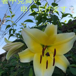 おはようございます‼️ お仕事帰りの方々 お疲れさまでした💚 気をつけてね🎆💛 おばあさんが、この花粉がついて、どれだけ困ったかを、延々と、お話下さいました。私は花粉の先を取って✂️部屋に飾ったお話をしました。 お花より、部屋が大切と思えた若い頃でした。 今なら絶対しない気がします。 下に何かを敷けば良かったのにと思えます。 このお花は、母の日に・・・ このお花は・・・ おばあさんは、寂しいのかな・・・ 沢山のお話の花を咲かせて下さり💛 帰りました。 大きな魅力的なユリでした。 長年毎年咲くそうですが 名前は知らないそうです😶。