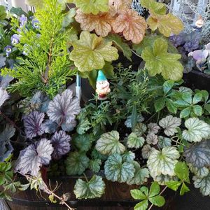 赤「この森は先週まで鍋だったらしいぞ!」 緑「え~っ!」 赤「でも、ラベンダーが悪臭放ってたから、 pechicaが代わりにエレモフィラ入れたら、 昨日は一度、海🌊になっちゃったらしいぞ」 緑「え~っ!」 紺「でも、結局はヒューケラのチョコミントにしたよね?」 赤「pechicaはヒューケラのドルチェシリーズの名前に弱いからのぉ。 果たして、ここに住んでも良いのじゃろうか」 pechicaは、せめてココにわしらを住ませて 森っぽくしようと企んでるらしい」 紺「pechicaの水遣りだと、すぐ荒れちゃうのかなぁ。 でも僕はここのヒューケラ🍃大好きだよ💕 近くにバタークリームも見えるし」 赤「だな😊まあ、暫く住んでみるかのぉ」 紺「やったぁ🙌」