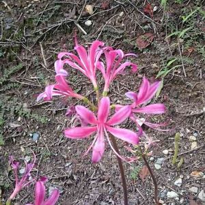 リコリス スプレンゲリー 地植えにして、2年目。 今年は全部で11本のスプレンゲリーが出てきてます。 ピンクの花の反り返った先に、ブルーのスジが入り、綺麗な色合いです💕 以下、ネットで調べたのを載せます。 「和名:ムラサキキツネノカミソリ(紫狐の剃刀) スプレンゲリーは、中国原産のリコリスの原種のひとつです。 中輪花で、紫桃色で青みを帯びた花色が魅力的です。 春に葉を伸ばして夏には葉が枯れます。その後、8月頃に花が咲きます。」