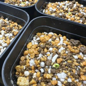 ギラウミニアナ 今回の6粒全て発芽しました。 メネデール水に数時間つけた後、PROTOLEAFさんの観葉・多肉の土にメネデール水かけてメネデール水で腰水。 種が届いて30時間で発芽。