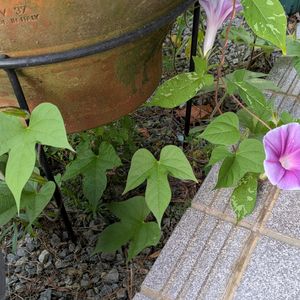 朝顔 ?初開花 タグ🏷️とは違うような 2枚目 今朝の朝顔 3枚目 昨夜咲くと楽しみにしていた白花夕顔水遣り中に当たって落ちました⤵︎ 4枚目 毎日咲く青斑入り 5枚目 ピンク絞り 朝から庭でアジサイの挿し木をしていたら暑くて暑くて途中水を飲んだりしても暑くなり又夕方にでもする事にしました シャワーしてお出掛けの用事をします 車も短距離移動だと涼しくならないうちに降りて、次乗ったら又暑いの繰り返し 汗をかくのも大切だと思い頑張るしか無い❗️