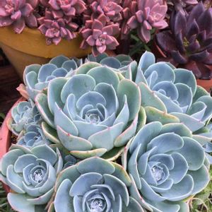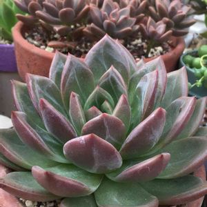 ここ数日でまた赤くなった❓干し柿みたいに白い粉が😊👆ウォーターマークが素敵❤️天候に左右されながら健気に頑張る多肉ちゃん達☺️✨みんな違ってみんな良い❤️