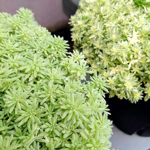 ①セダム クリームソーダ(斑入りパリダム)とミルクゥージ 近頃雨が多いせいか触るとパツパツで固いです。 ②玄関軒下の多肉の寄せ植え。 ルビーネックレスが元気です。 ③オトンナ カカリオイデス 葉っぱが出てきてかわいい💚