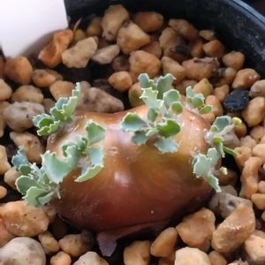 オトンナ・カカリオイデス(実生) うちわ型の葉が生い茂ってきました!塊根部も良い感じに大きくなって肌が割れてますね〜 カカリ可愛い♪
