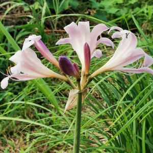 ナツズイセンが一本だけ💗 咲いていました。💮 優しいピンク色が素敵ですね。🌸 きらめき通りの花💖