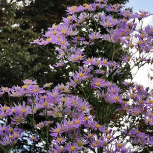 下から見上げるシオンの花💜 薄紫色が爽やかです。✨🌸💗