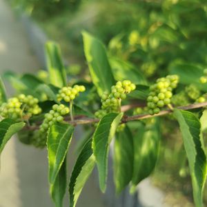 ムラサキシキブの実がなっていました。 藤色になるのが楽しみです。💜