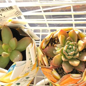 ダイソーで買ったエケベリアタグのこの子。 当初、インディカでは?と思ったんだけど、インディカだとシノクラッスラってタグだからあれれー?おかしいぞー?ってなっていたwww 今朝見たら緑の部分が無くなってた。 あれ君ウチにいるブロンズ姫にそっくりじゃない?www 君、ブロンズ姫?😆