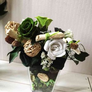 初めてのプリザーブド フラワーアレンジメント♪なんとか形になったのかな… ポプリ入りで香りがとてもいい♪