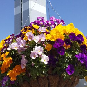 久々に木曽三川公園に行って来ました🚗³₃ 入口にビオラの球状の寄せ植えがいっぱい🥰 ちょうど、はながら摘みをしてみえた方に植え方やパンジー、ノースポールの世話の仕方を教わりました🤗