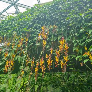 新宿御苑大温室 ①② ツンベルギア・マイソレンシス ③ オウギバショウモドキ いつも見上げる場所で咲いてる。 こんな間近に見るのは、初めて ④ 木立ちベゴニア ⑤ カカオ 幹に直接実が付いて 大温室、翡翠葛は申し訳程に残ってたけど、見応えある植物が。 新宿御苑の花散歩、みどりのまとめに 時間のある時覗いてね。