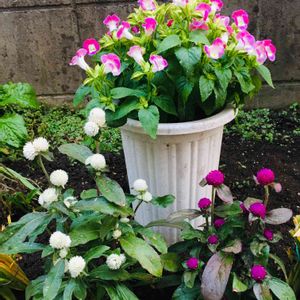 プランターで育てていた千日紅が、ドライフラワーのようになっていました。 一年草らしいので、このあと花だけ✂️チョンパしました。 ①赤 ②ピンク ③白と赤 ④自然にドライフラワーになった全体 ⑤全盛期の千日紅 (コラージュしてるのでサイズがカットされています)