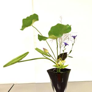 立花新風体、初めて蓮子をいけました。 蓮子は、すぐに元気がなくなってしまうので、ポンプを使ってお水を入れて元気にしてあげます。