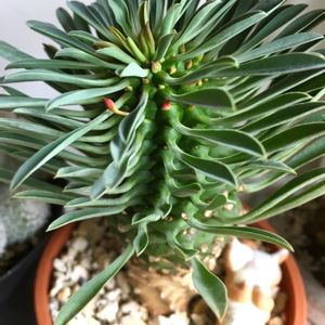 冬に葉を落とした「蘇鉄麒麟」。 新しい葉を出し始めるとともに、 花芽も出て来ました♪♪♪