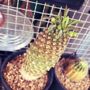 気になりすぎて買ってもうた… やっぱ普通の蘇鉄麒麟と違うよな〜 皆さんの家のパイナップルコーンはこのタイプですか?? ※どうやらこいつは峨眉山と鉄甲丸の交配種の蛾眉鉄甲のようです