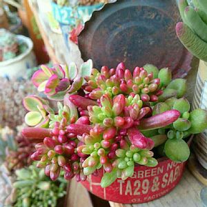 astyle.o3さんにいただいた赤い赤いリメ缶にとっておきのオーロラと 大粒ペンデンスを……お気に入りの一鉢です(^^)v