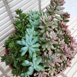 2019/7/23(火) ‹セダム属寄せ植え› 軒下管理・北東側明るい日影 シトシト位の雨だと雨がかからない☘️オーロラがほんのり桃色で彩ってくれて見た目爽やか☘️💚☘️
