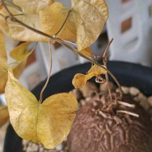 アフリカ亀甲竜 最初に出た葉が黄色くなってきました そろそろ休眠期に入りそうです 一年で2回り程大きくなりました 塊根部のひび割れも目立つ様になってきましたね ゆっくり眠って、又元気に目覚めてね🤭 ペトペンティア ナタレンシス お目覚めです✨ ずっと断水していたので塊根がシワシワしていたけれど お水をあげたら硬さが戻ってきました 可愛い葉がバンザイしているよう お目覚めと休眠楽しい季節になってきました