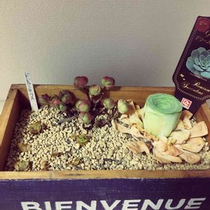 今年最後の巨峰と休眠中のアエオニウム どっちも丸くて可愛いです😊 巨峰は14個育ちましたが8割は人にあげました🍇 みんなほんとに嬉しそうに貰ってくれて私も嬉しいです