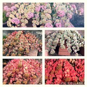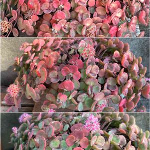 ミセバヤさんたちも順調👍 ↖️斑入りミセバヤ ⬅️赤葉ヒダカミセバヤ ↙️いつものミセバヤ(地植え) ↘️いつものミセバヤ(鉢) ➡️カラスバミセバヤ