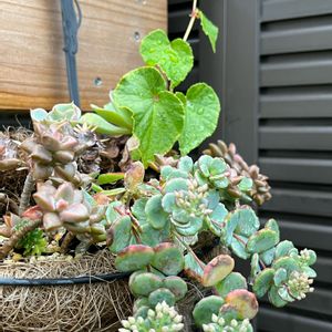 ハンギングのミセバヤ 小さい株だけど…蕾を持った🙌 涼しくなって元気が出て来た小さなシュウカイドウと一緒に💚