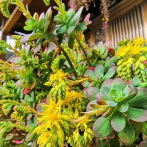 挿し芽と多肉花の寄植え風。 なんか料理の名前っぽい😁 挿し芽の収穫と合わせて、花芽で花うららが歪んできたので、花芽をカット✂️ 多肉の花芽って、切った後開花してくれちゃったりするかなぁ?