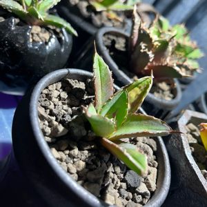 おはようございます☂️ アガベチタノタ 最近まで興味すら なかったのに♪( ´▽`) でもワクワクするんですw 手前のふたつは発根管理中🪴 大きくなーれー📣