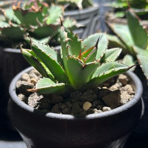 アガベ チタノタ ブラックファイヤー 23年8月24日購入 メデル 1番鋸歯が黒く、葉の締まった感じのを選んできました👍徒長しないよう頑張ります❗️ 4,400ペソ