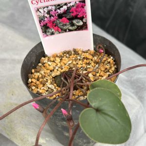 原種シクラメンコウム 庭に地植えしてるのですが、いつの間にか白だけになり結構増えたので 違う色が売ってたので〜😅 パンジー ドラキュラを買ったお店の中に置いてあってラッキー💖💖💖