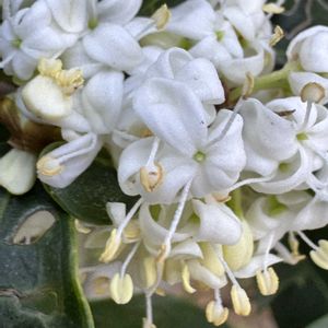 ヒイラギ 我が家の庭より 金木犀が終わり,接木の台木として使われたヒイラギが真っ白な花をつけ芳香を漂わせています。 🤍🤍🤍🤍🤍🤍🤍 樹齢はわかりません 本来なら葉は鋭いトゲがついているはずですが,人と同じで年齢を重ねるほどトゲがなくなり丸くなるそうです。 トゲのある葉はあまりみられなくなりました。 義父の遺産(度々登場) 現在の所に住み始めた時 シンボルツリーとして植えたのが54年前 ➕?年(樹齢) 枯れないで毎年花を咲かせ金木犀と共に甘い香りを届けてくれてます。 🏷️木曜は木の花 25/11/27