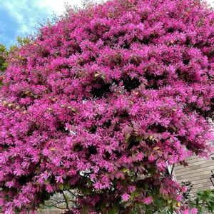 💠ベニバマトキワマンサク💠 紅花常盤万作 13年前に2本一緒に植えた木です。毎年まあるく剪定しているうちにかなり大きくなりました💕 近くで花を見ると細長いヒラヒラした花びらがとても可愛いです💖 マイガーデン 🏷木曜は木の花 🏷ピンクワールドへようこそ 🏷毎日ピンクの日 🏷春の木の花 に参加させていただきます💕