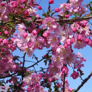 🌳木の花たち その191 ザクラ(半八重咲) こちらは白っぽい花色ですが、 花びらが重なるとほんのりピンクになっています。 やはり似た花は見つかりましたが同定できないので、サクラで…(^^;; とにかく、可愛いです🤍 📍日と空と いづれか溶くる 八重桜 渡辺水巴 ちりめんうさぎさん主宰🏷春色ピンク 🏷木曜は木の花 🏷空を見上げて 🌤 *・゜゚・*:.。..。.:*・'🌸'・🌿*:.。. .。.:*・゜゚・* ⌘ ちょこっとメモ ⌘ 🔸サクラの原種 11種確認されており、エドヒガン、オオシマ ザクラ、ヤマザクラ、カンヒザクラ(沖縄で野生 化)、マメザクラ、チョウジザクラ、オオヤマ ザクラ、カスミザクラ、タカネザクラ、ミヤマ ザクラ、クマノザクラ(紀伊半島南部で2018年 に発見)などが認められており、これらの変性や 交雑などから数十種類の自生種が存在する。