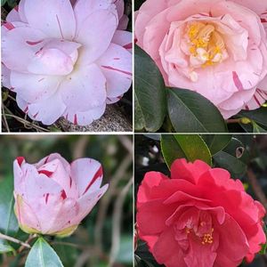 ツバキも、まだまだ美しく咲いています。 一本の木🌳から、これだけの種類が‼️