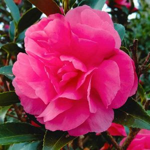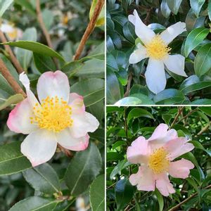 寒椿 我が家の和庭で咲き始めています。 冬の間華やかな花を咲かせる寒椿。白やピンクの色を大きな花が、寒く寂しい庭を美しく彩ってくれます。また樹高も低くて扱いやすく、生垣に利用できますよ。 かんつばきは、さむさきびしいなかや日陰であっても花を咲かせます。その花の姿のイメージから「謙譲」「愛嬌」「申し分のない美しさ」という花言葉が付けられました。 花の特徴:一般的には淡い紅色の八重咲きが多いが、しろやももいろのものもある。 葉の特徴:葉は暗い緑色をした細長い卵形で、互い違いに生える(互生) 🏷木曜は木の花 に参加させていただきます💕