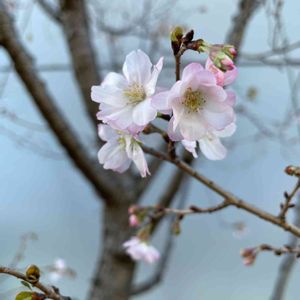 木曜は木の花 に参加させていただきます。💕 友人達と今日出かけた銀座シックスの屋上で見つけました。2本が可愛く花をつけていました。ジュウガツザクラでしょうか。