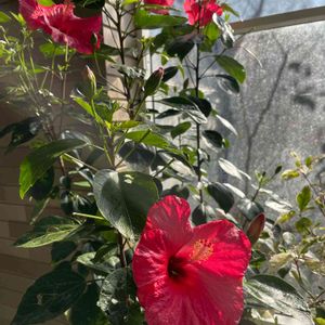 🏷木曜は木の花 に参加させていただきます。 ハイビスカス🌺 寒くなってきたのでテラスの仮温室に入れてあります。今朝は暖かな陽射しを受け、気持ちよさそうに咲いています。3年くらい前に友人からいただいた小さな苗が、私の背くらい伸びて大きくなりました。 マイガーデン