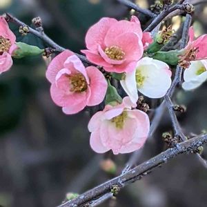 寒木瓜です。 白🤍からピンク💓へのグラデーションが素敵😍 🏷木曜は木の花 🏷ピンクワールドへようこそ