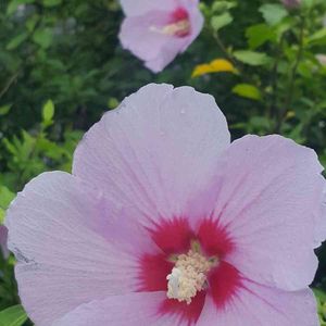 こんにちわ☺ 今日の2枚目 です😊。 こちらは、お散歩出会った可愛いむくげのお花 🌸です。恥じらっているような可憐さで⁉😊。 [木曜は木の花]に参加させてくださいね😊。